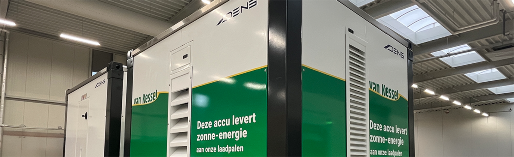 deze zomer wordt hun laadplein gevoed met zonne-energie. Met 450 zonnepanelen op het dak van hun bedrijfspand en een DENS Powerhub voor lokale PV-opslag, kan Van Kessel het groeiende aantal elektrische auto’s en trucks op de weg duurzaam opladen.
